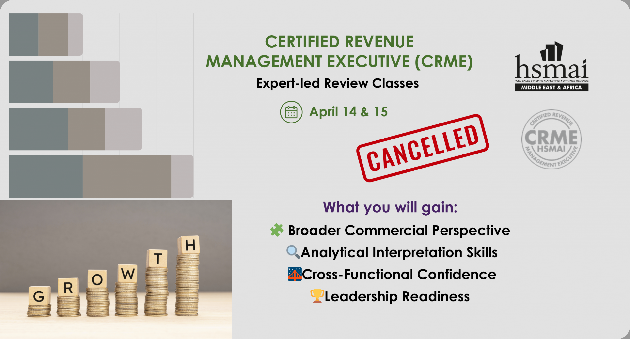 Global Events « All Events CRME Review Class MEA In Person – Cancelled April 14 @ 9:00 am - 5:00 pm « FIFA International Readiness Training Commercial Career Start Program – Sales Track » ”SIGN Add to calendar Google Calendar iCalendar Outlook 365 Outlook Live Details Date: April 14 Time: 9:00 am - 5:00 pm Event Category: Classes Event Tags:CRME, Reviewclass Website: https://hsmaime.org/crme-reviewclass/ Organizer HSMAI Middle East & Africa View Organizer Website Tags: CRME, Reviewclass
