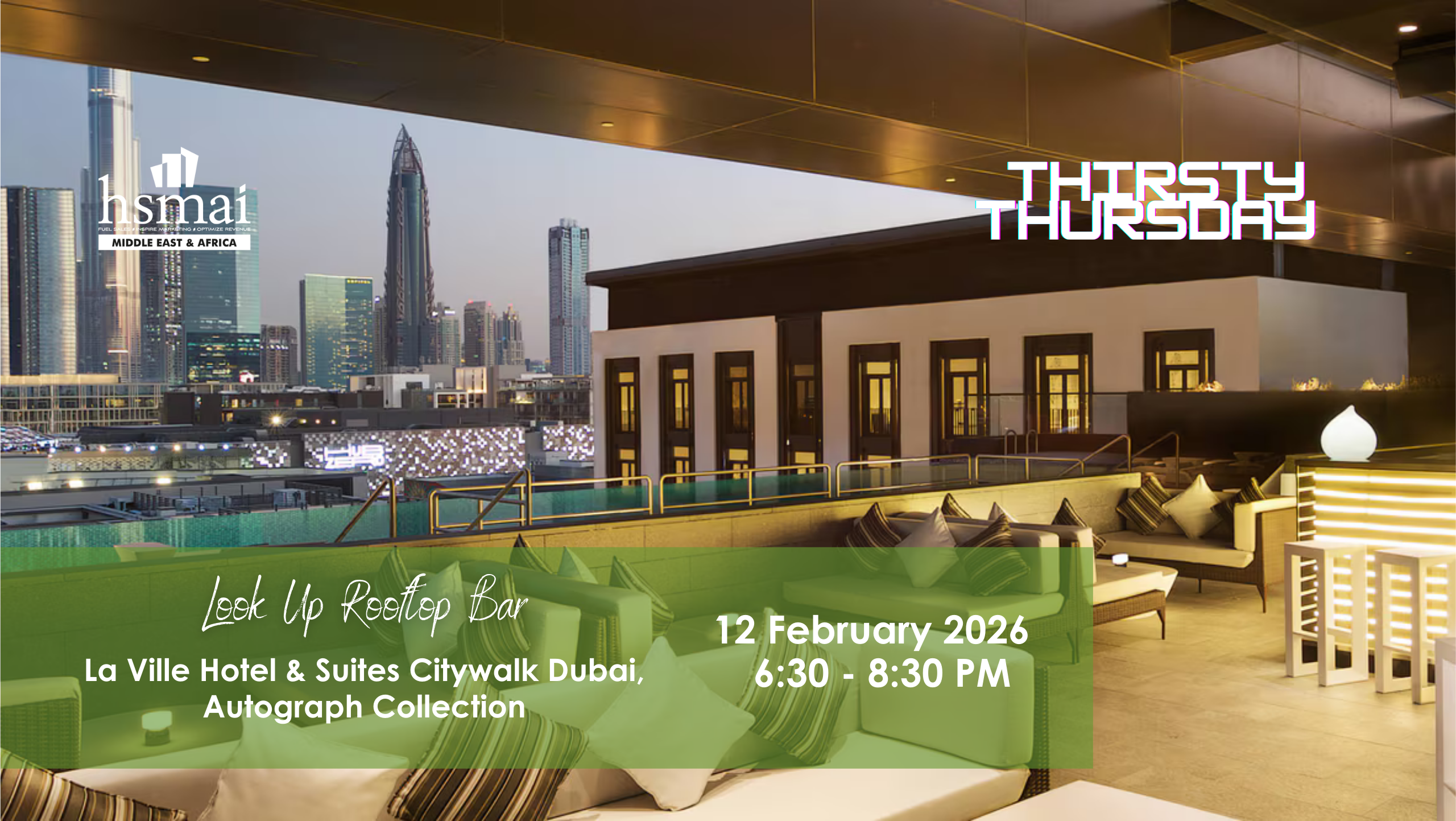 HSMAI MEA’s Thirsty Thursday is the perfect midweek escape, offering a refreshing break in some of Dubai’s most sophisticated venues. This event provides an excellent opportunity for networking and relaxation, set against the backdrop of the city’s swankiest spots. Designed to bring together professionals from the hospitality industry, Thirsty Thursday is a must-attend for anyone looking to unwind and connect in style.