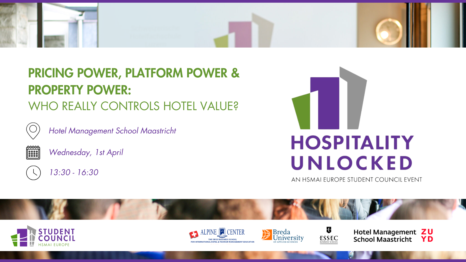 Hotel Management School Maastricht Zuyd Hogeschool Bethlehemweg 2, MaastrichtHospitality UnlockedHospitality Unlocked, an event organized by the HSMAI Europe Student Council 📅 Wednesday, 1st April ⏰ 12.30 pm – 5.00 pm 📍 Hotel Management School Maastricht Hospitality Unlocked, organized...