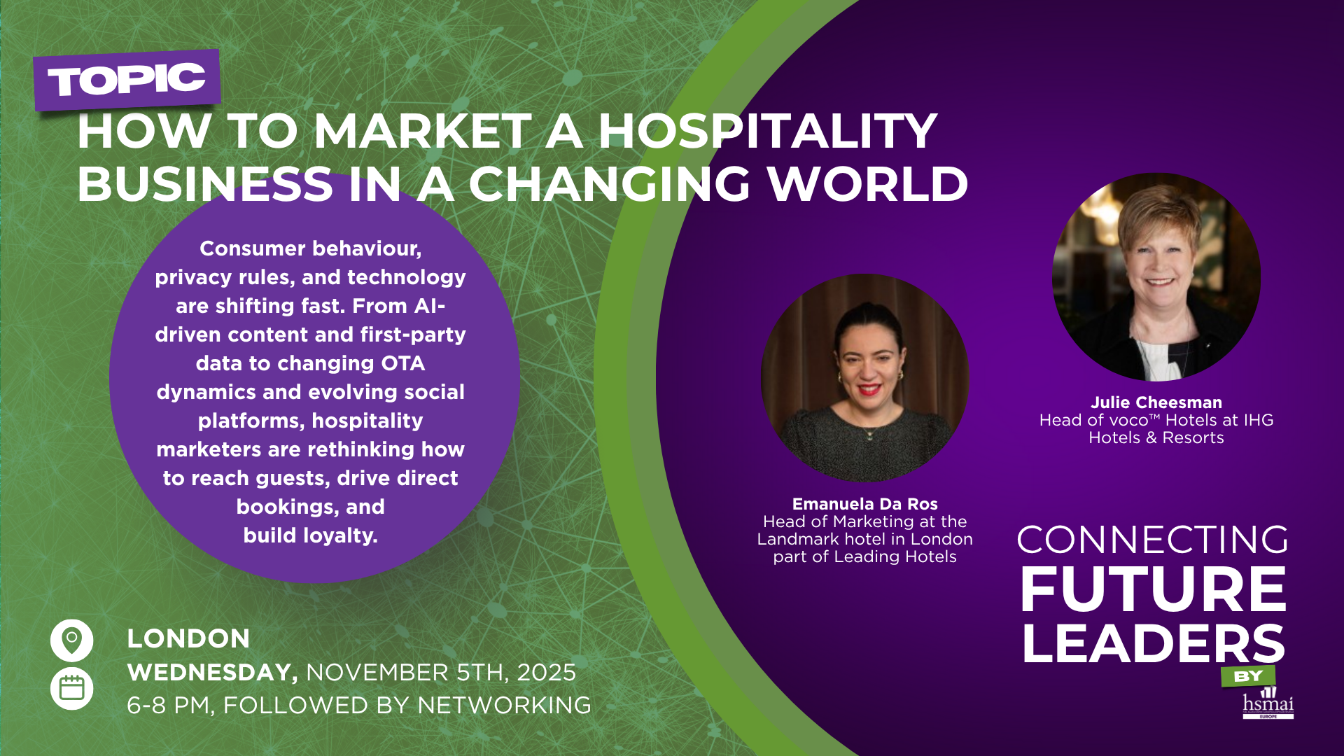 Connecting Future Leaders in London How to Market a Hospitality Business in a Changing World 📅 Date: Wednesday, 5th November ⏰ Time: 6:00 pm – 8:00 pm (followed by networking...