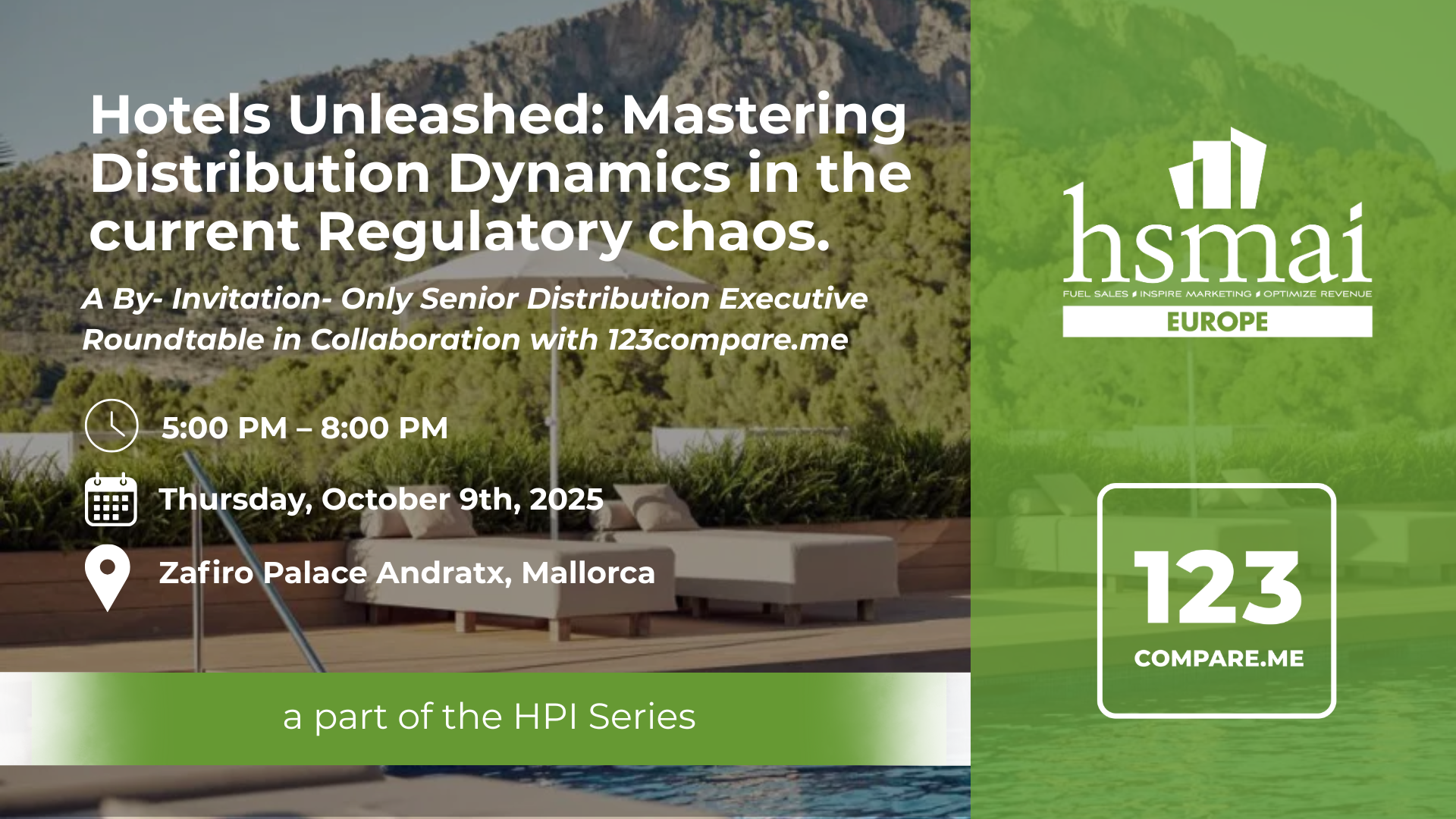 Zafiro Palace Andratx 3 Carrer Cromlec, Camp de Mar, SpainHotels Unleashed: Mastering Distribution Dynamics in the Current Regulatory Chaos๐ Thursday, October 9th, 2025 ๐ Zafiro Palace Andratx, Mallorca ๐ 5:00 PM โ 8:00 PMJoin HSMAI Europe for an exclusive...